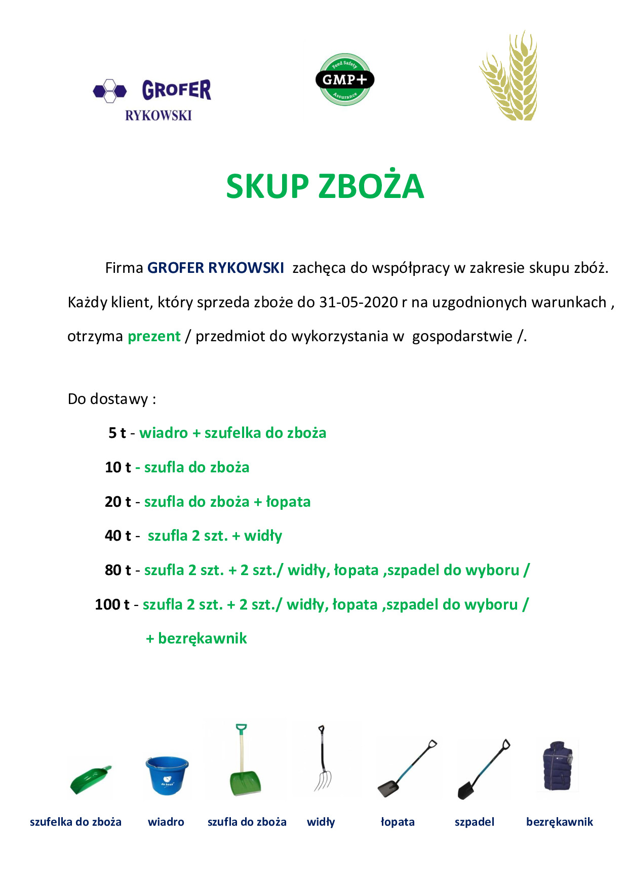 Prowadzimy również skup zbóż , w większości od rolników utrzymujących z nami współpracę , zapewniamy transport , płatność gotówką lub kompensatę wzajemnych zobowiązań